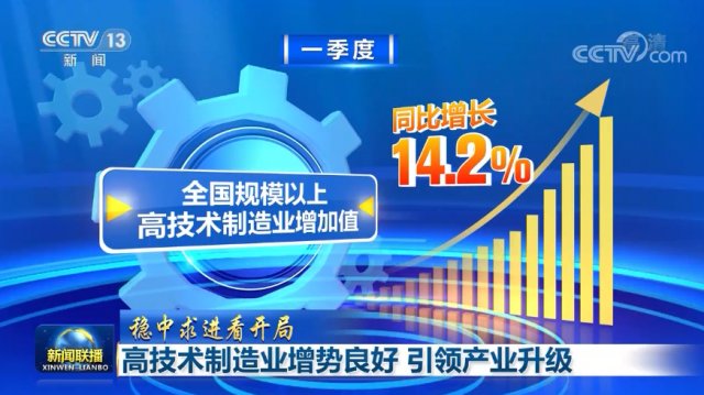 摘要:央视网消息 (新闻联播):随着创新驱动战略有效实施和市场对中高端产品需求增加,我国产业升级步伐加快。一季度,高技术制造业增长势头良好,持续发挥出对工业的支撑和引领作